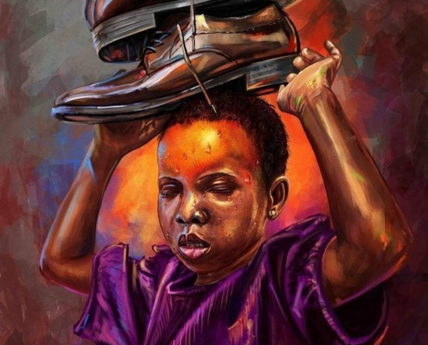 The shoe speaks to indignity, to struggle, to the things that press down on us. But the hands are not breaking. I paint what it means to bear weight and still stand.This is about resilience that doesn't look gentle. This is about the dignity in endurance. The way we carry our stories, our pain, our refusal to break.