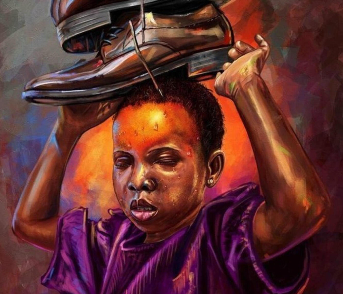The shoe speaks to indignity, to struggle, to the things that press down on us. But the hands are not breaking. I paint what it means to bear weight and still stand.This is about resilience that doesn't look gentle. This is about the dignity in endurance. The way we carry our stories, our pain, our refusal to break.